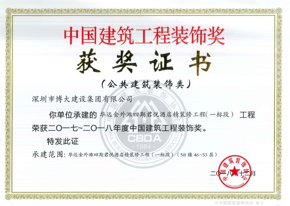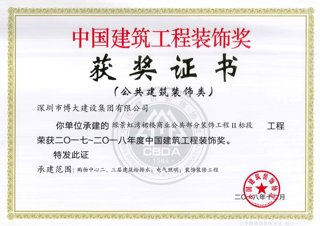 卓越品質(zhì)鑄經(jīng)典工程 博大又獲5項(xiàng)中國(guó)建筑工程裝飾獎(jiǎng)