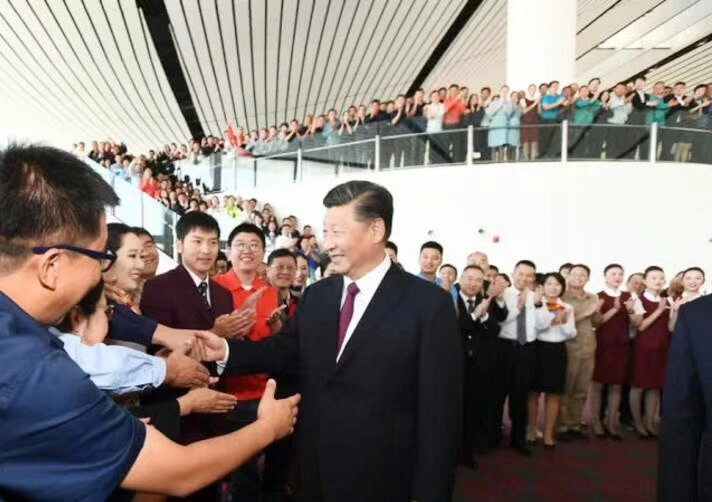 習近平總書記等巡覽航站樓(圖片源自新華網)