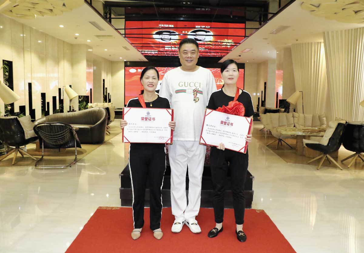 大會上最動人的便是師兄徐凱宏親自為劉杏秋、魏玉芳兩位清潔工阿姨頒獎。為打造博大五星級辦公環境,她們以公司為家,兢兢業業,在平凡崗位上做出不平凡的貢獻,深受博大人的尊敬和喜愛。