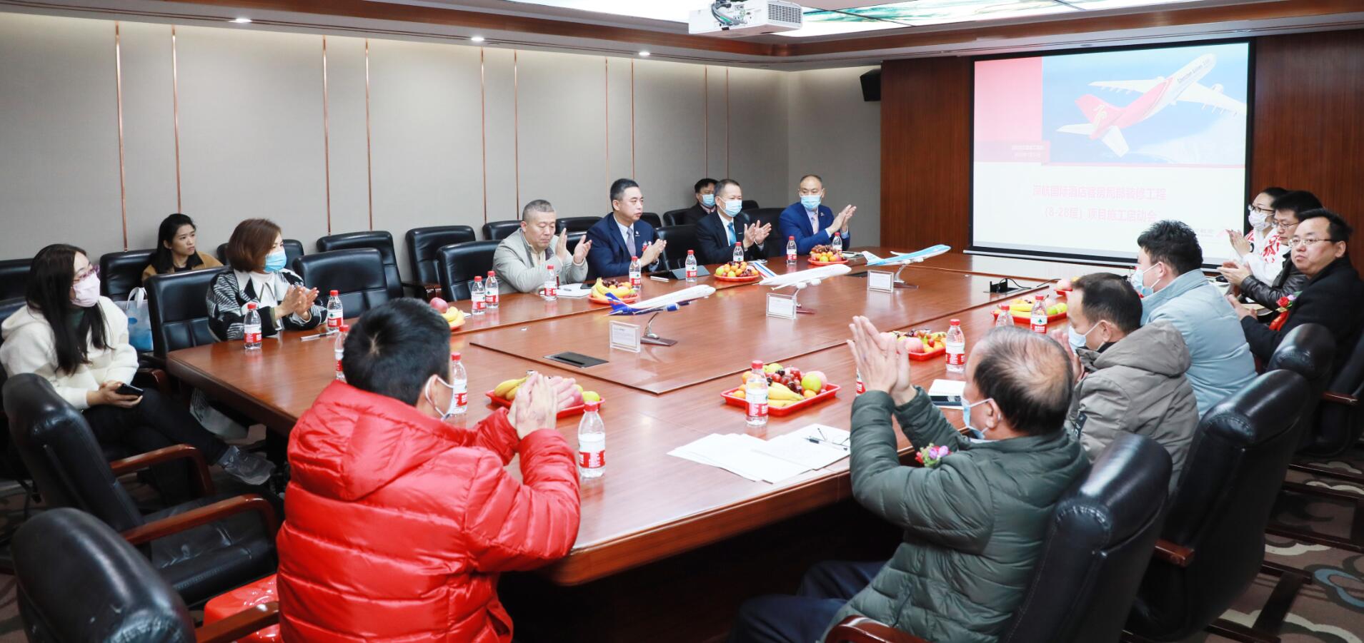 2021年1月14日,在開完深航國際酒店客房局部裝修工程第一次工地會議后,集團副董事長黃河、第三戰區總經理徐朝華與深航基建處副總經理陳新、深航基建處工程管理中心譚波、深航酒店副總經理肖強、深圳市中安項目管理有限公司總經理趙坤強等一行領導參加了深航國際酒店開工典禮剪彩儀式。