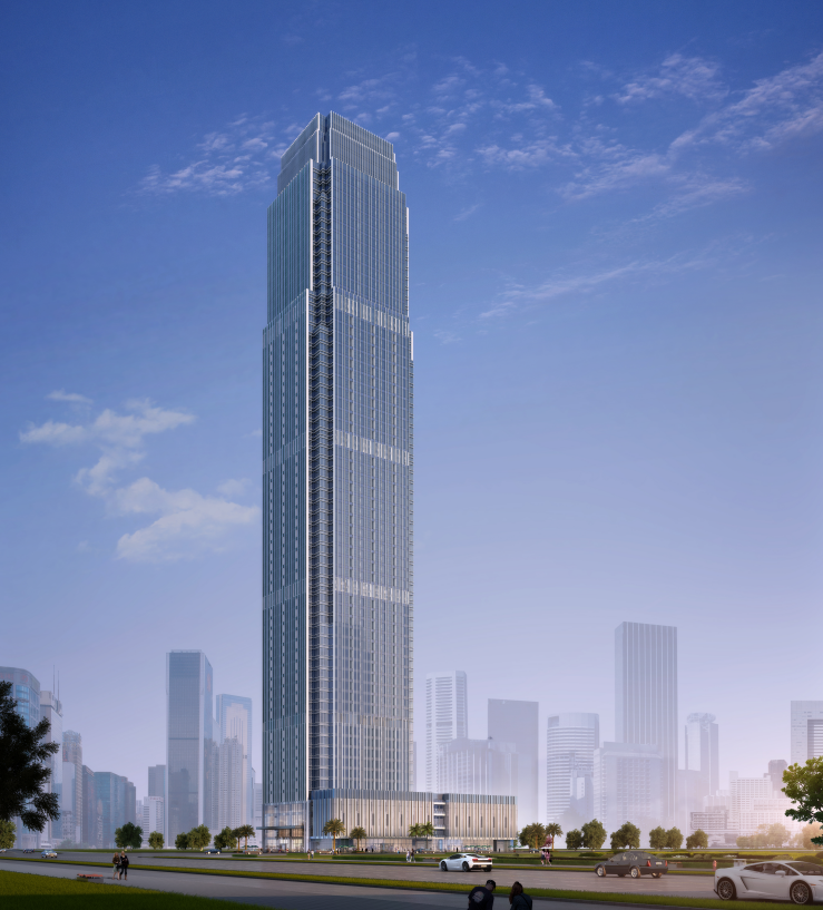金港中心為超高層建筑,建筑高度達(dá)到271米,地上70層,是防城港市最高樓。主要幕墻系統(tǒng)為玻璃幕墻、陶板幕墻、鋁板幕墻、雨棚、百葉、門窗等,幕墻總面積約60000㎡。