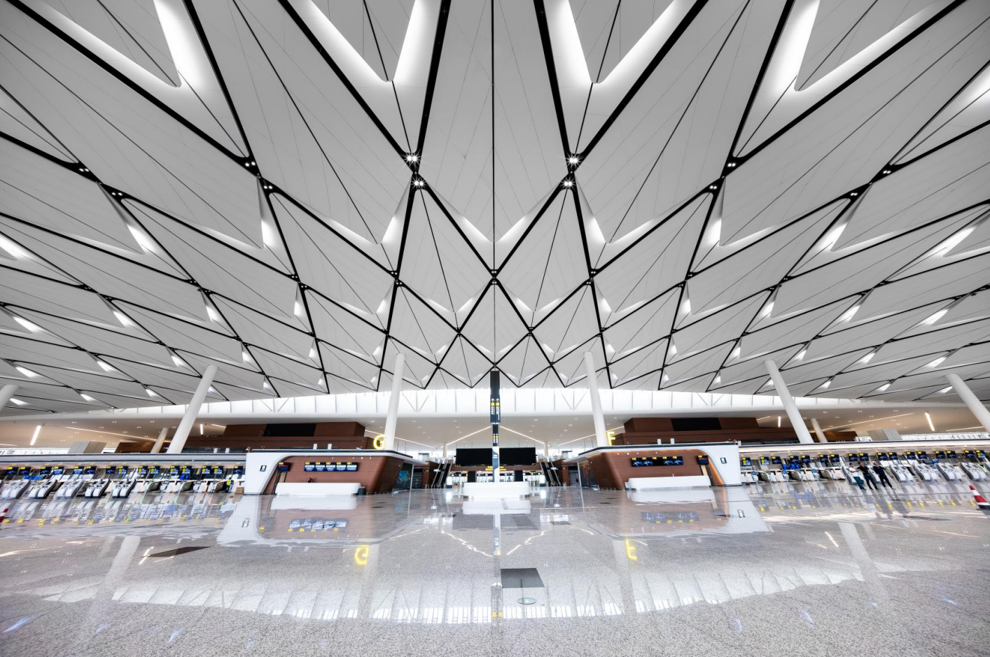 成都天府國際機場為4F級國際機場、是絲綢之路經(jīng)濟帶中等級最高的國際航空樞紐之一,中國首個“手拉手式”航站樓,總面積71萬㎡,每座航站樓有3萬㎡的羽毛狀吊頂與“太陽神鳥”的整體造型呼應 。航站樓共設置83個廊橋機位,能夠滿足2025年2800萬人次國內(nèi)旅客吞吐量和1200萬人次國際旅客吞吐量的需求。預計本月開通運營。