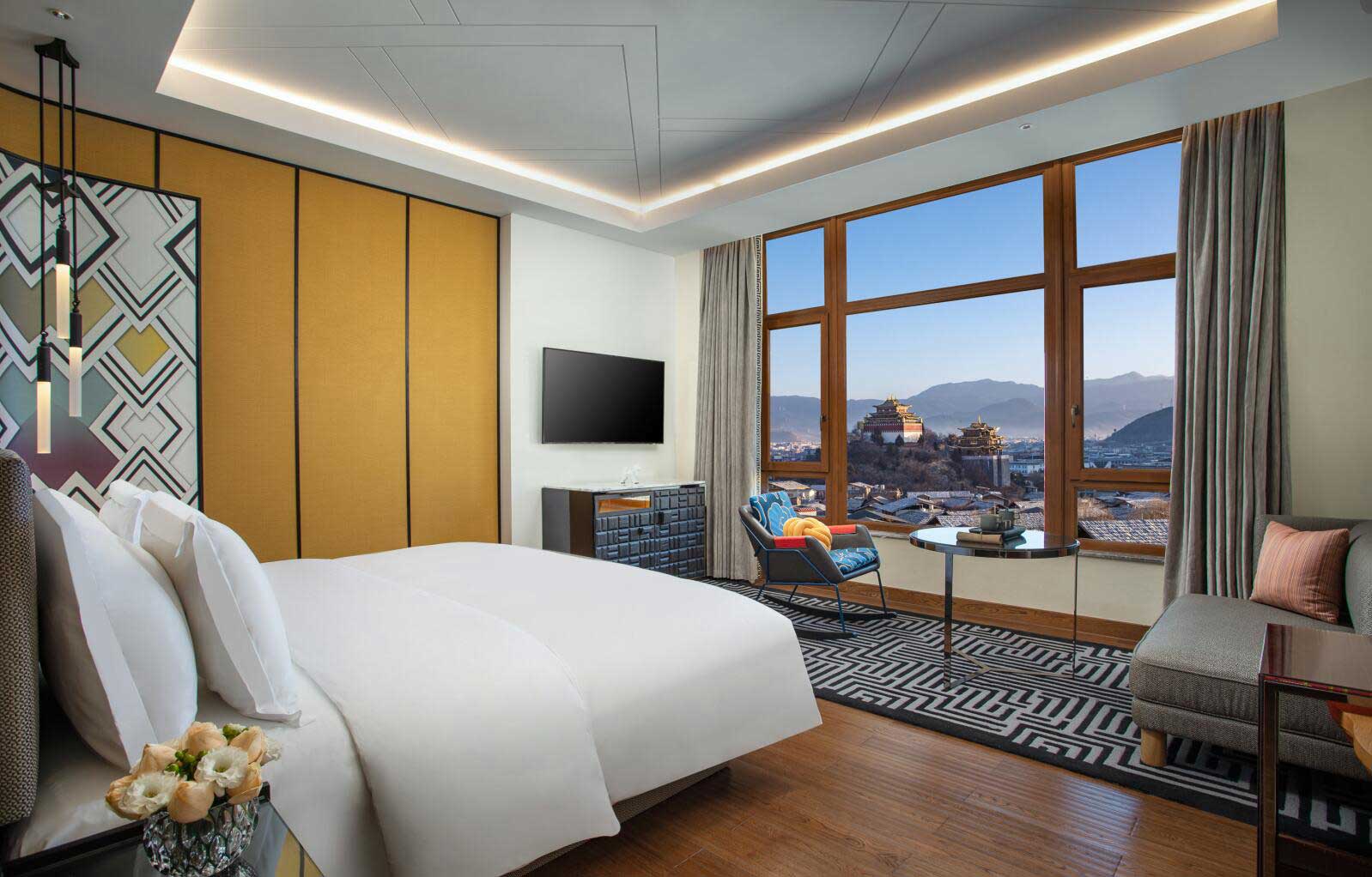 房間設(shè)計從藏地文化中汲取靈感,寫意回溯香格里拉鄰間故事,打造兼具民族風(fēng)韻和現(xiàn)代舒適的下榻空間,點綴精挑細(xì)選的工藝品及特色壁畫,房間的角落和細(xì)節(jié)處處可見充滿本地風(fēng)情的鄰間文化。開窗見景,入室賞藝,高品質(zhì)客房設(shè)施營造了引人入勝的旅居氛圍。