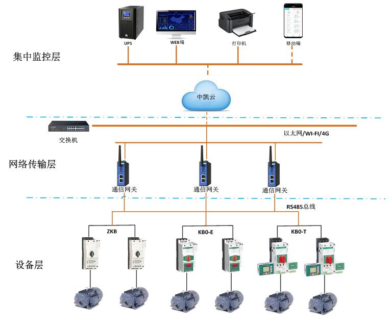 基于中凱物聯(lián)網(wǎng)云平臺(tái)的電動(dòng)機(jī)智能監(jiān)控系統(tǒng),以可通訊KB0作為電機(jī)控制與保護(hù)的核心元件,并實(shí)時(shí)采集電動(dòng)機(jī)數(shù)據(jù)包括:實(shí)時(shí)電流、實(shí)時(shí)電壓、故障信息、整定參數(shù)等,通過中凱智能網(wǎng)關(guān)上傳至中凱云平臺(tái)。