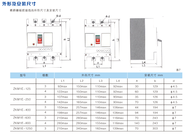 ZKM1E電子式塑殼斷路器具有三段保護動作電流、動作時間選擇。具有“預報警”指示。大電流瞬時脫扣功能,當斷路器閉合時或在運行時,遇短路大電流(≥20Inm),斷路器由電磁脫扣機構直接脫扣;安裝具有互換性,外形尺寸與ZKM1系列塑殼斷路器規格相同,按產品極數分為三極與四極。接線方式分為板前接線、板后接線、插入式板前接線、插入式板后接線、抽出式接線五種;斷路器分帶附件和不帶附件兩種。